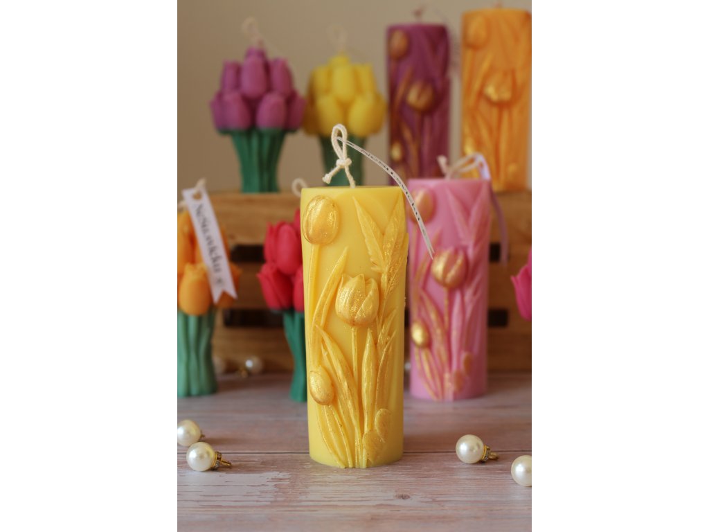 Válec s tulipány - 155g vosku, vůně Tulipán